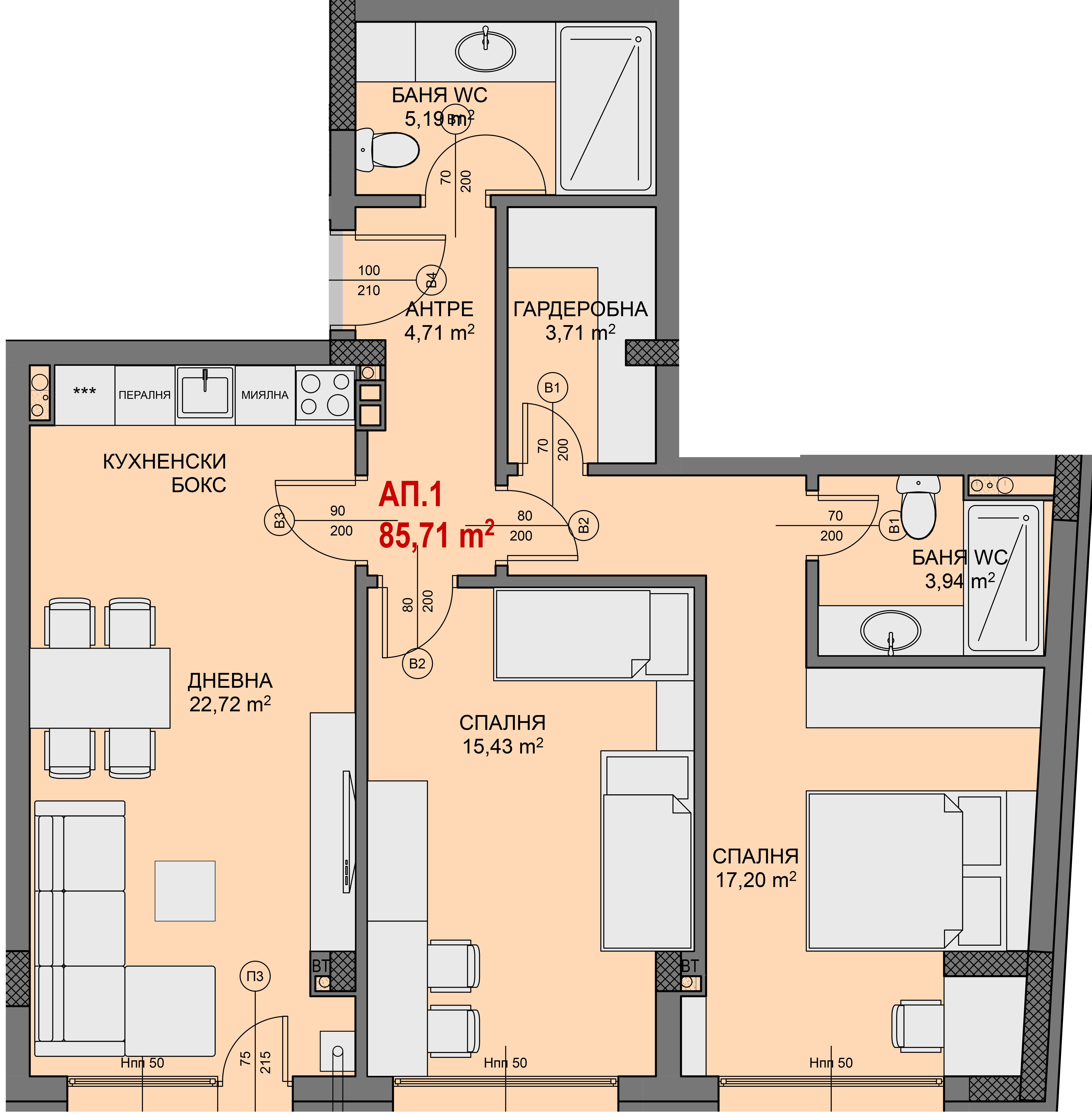 Чиста площ: 77.73