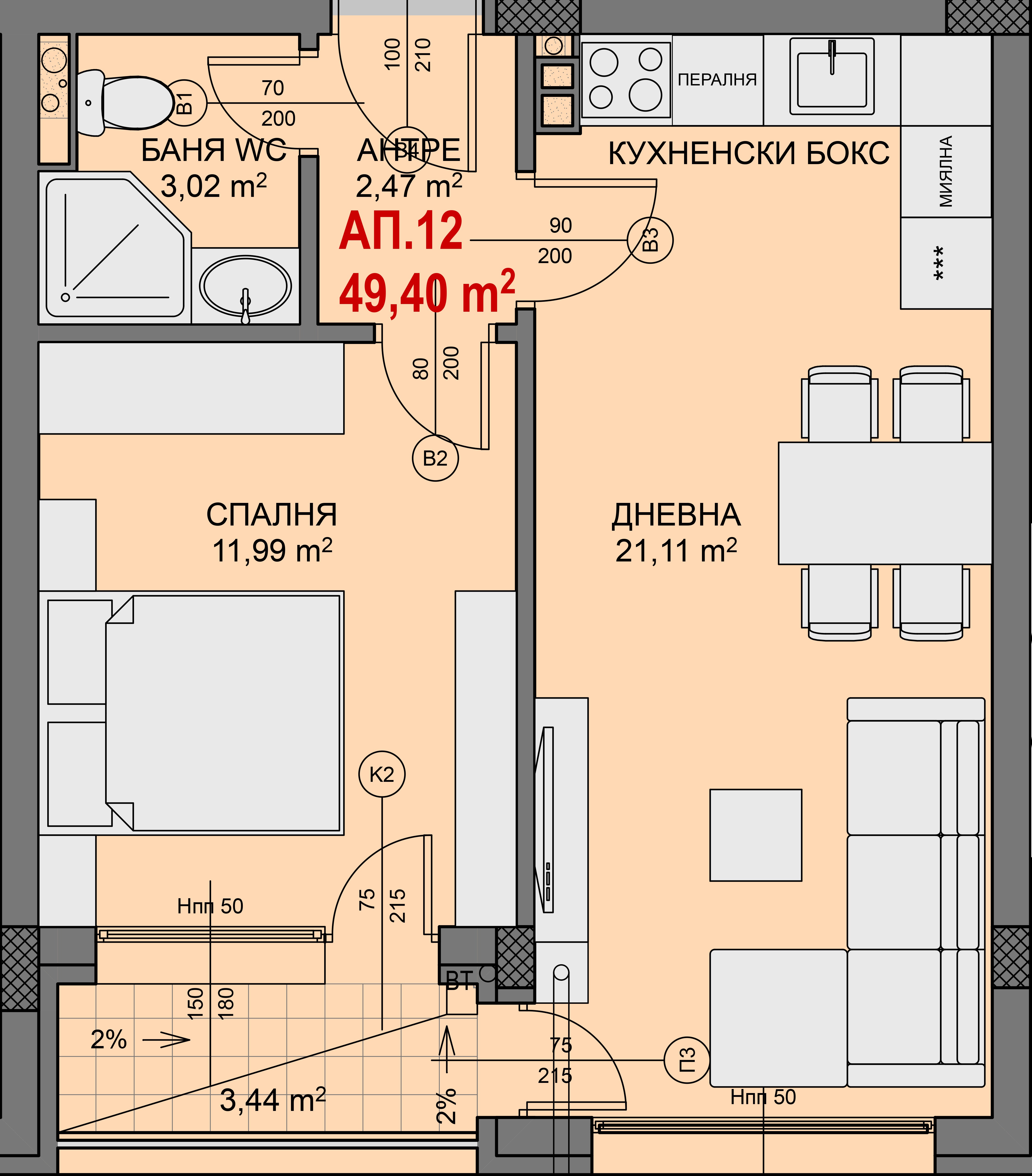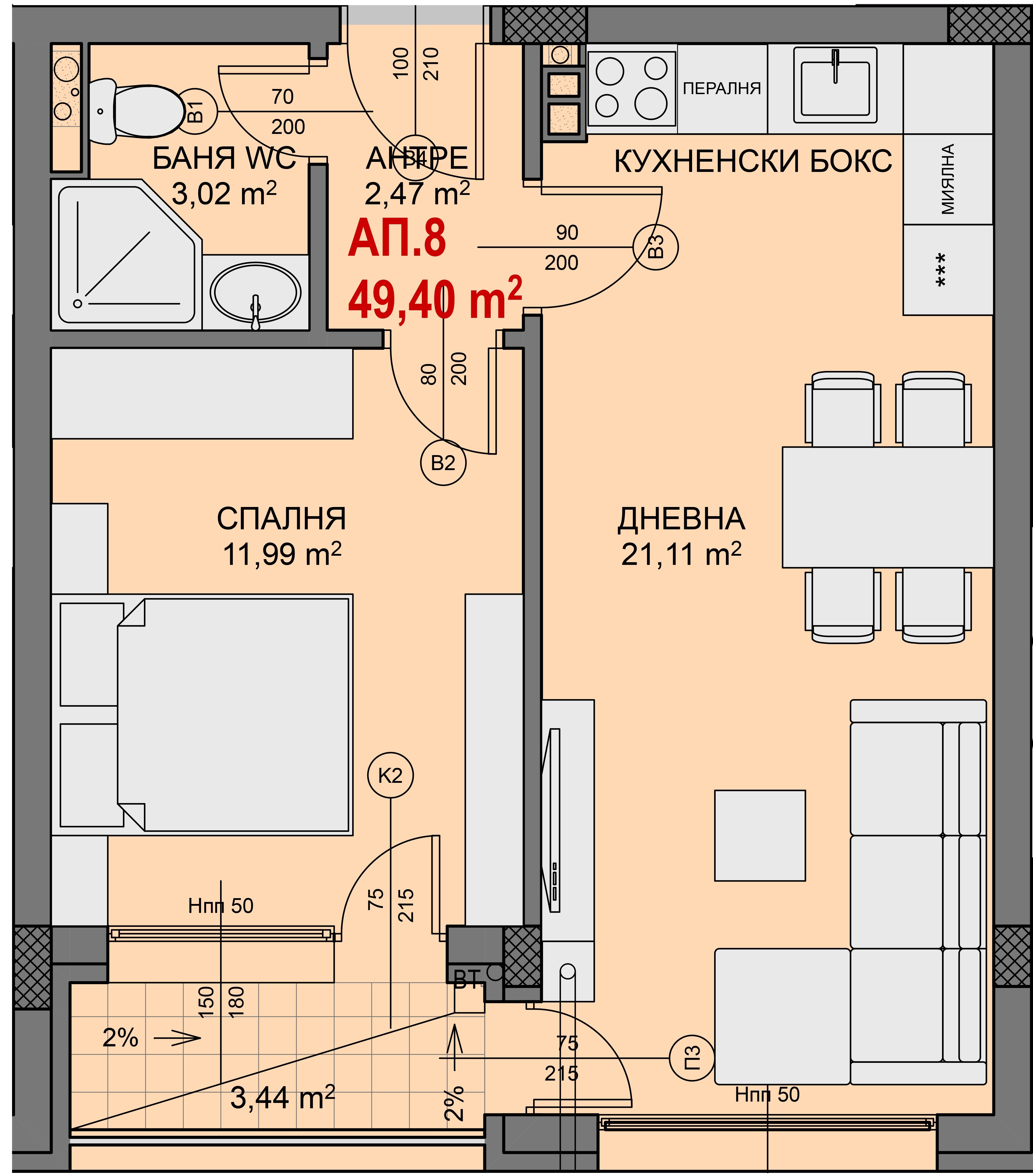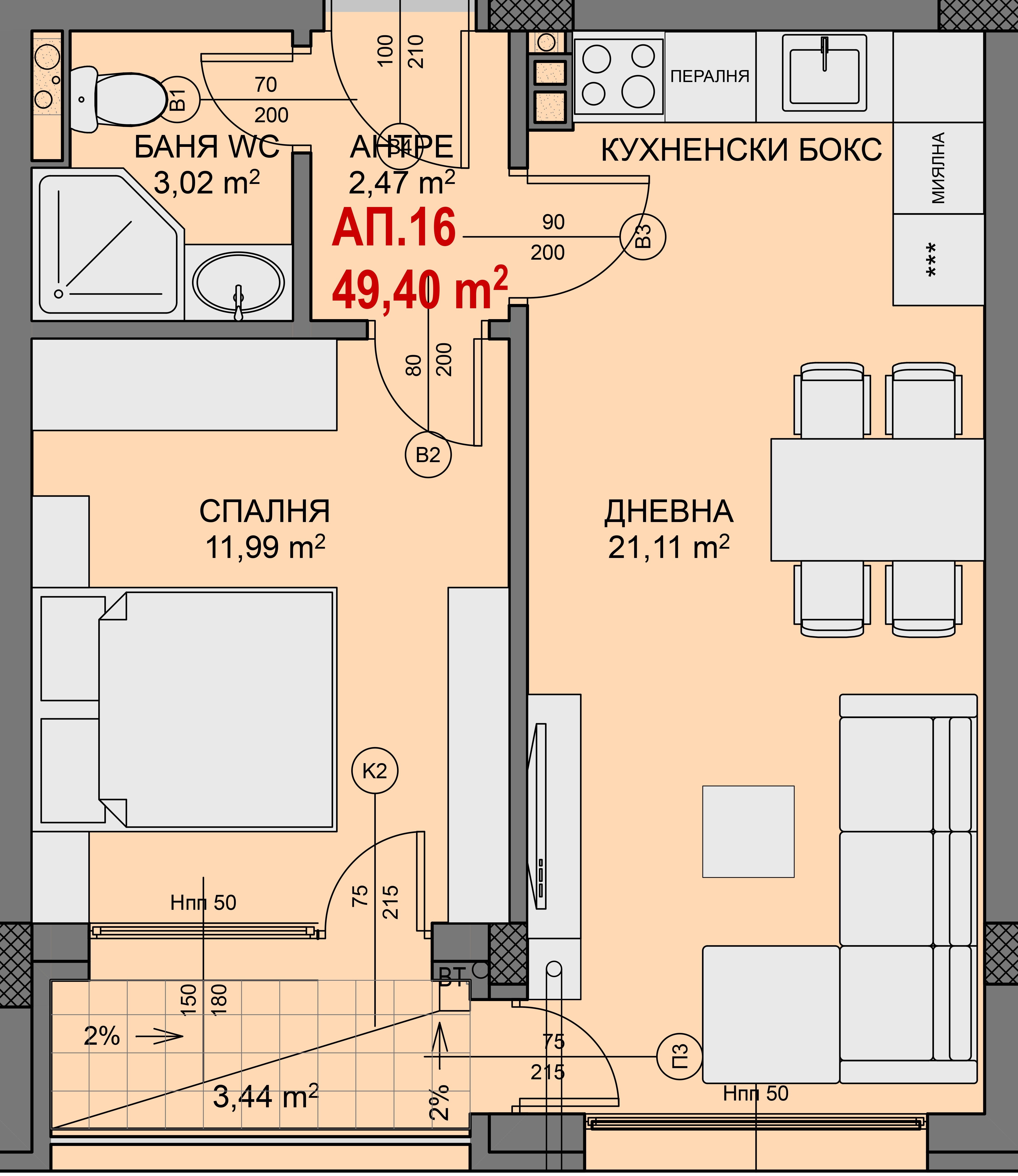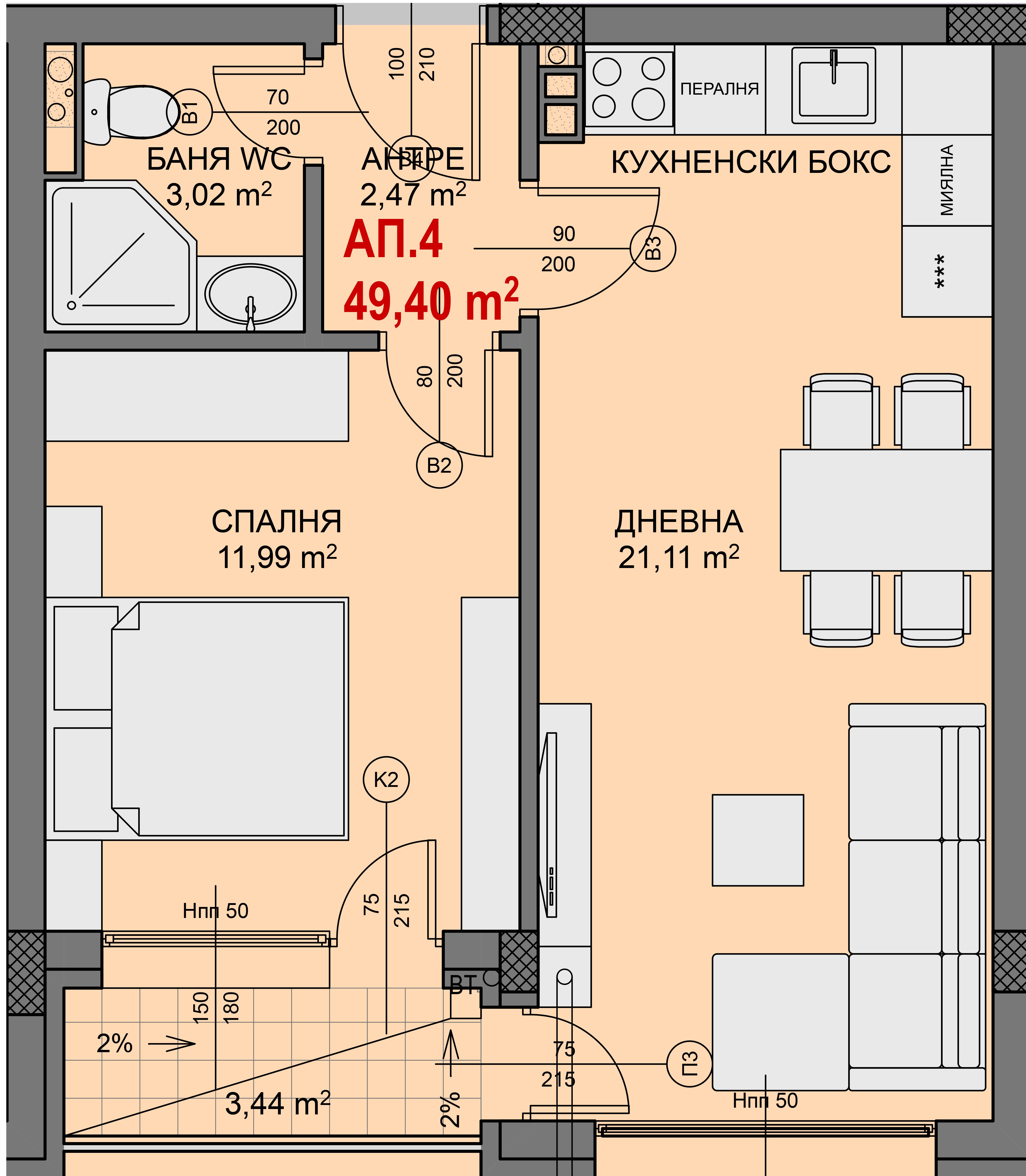 Чиста площ: 49.4